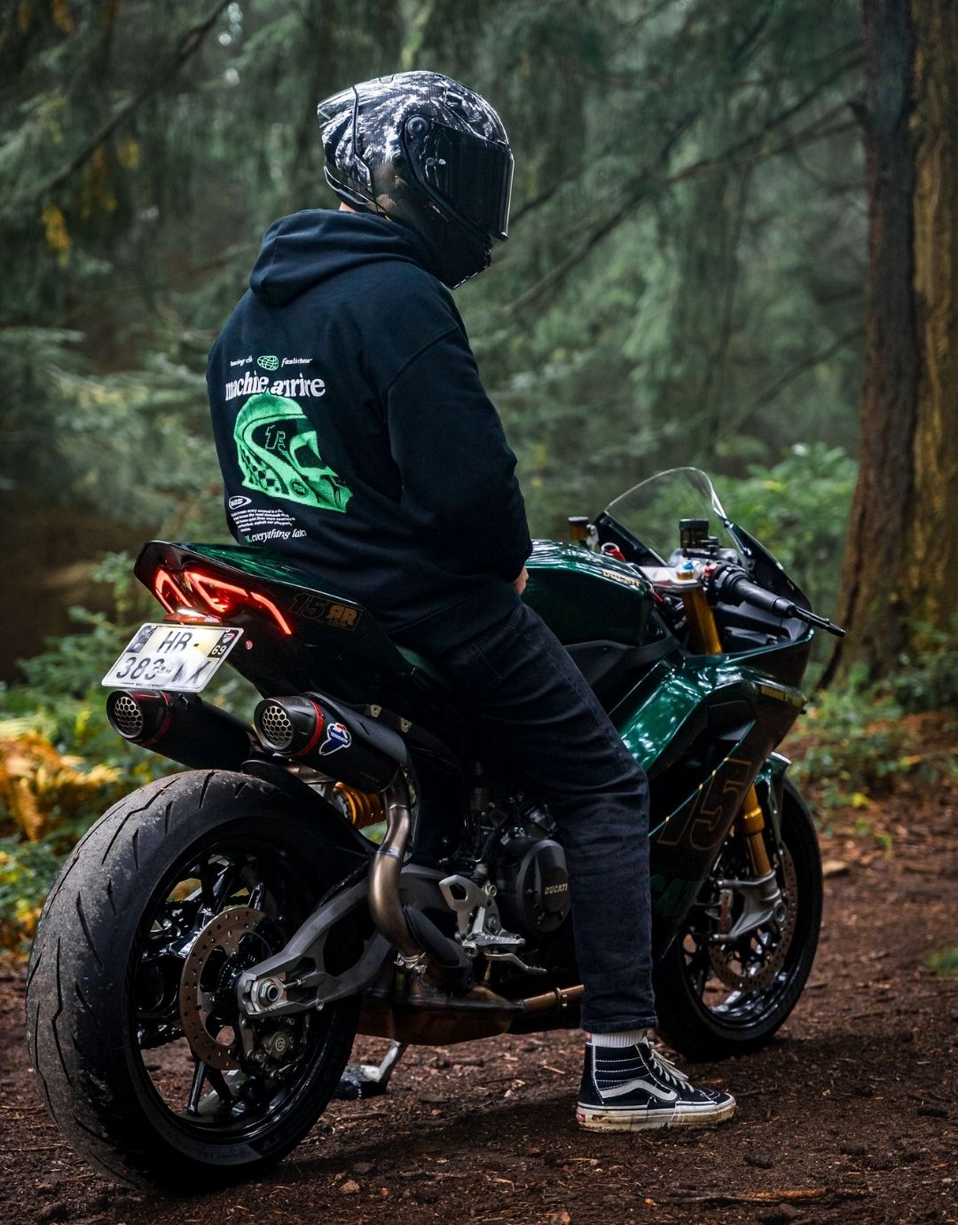 Légère, vive et parfaitement équilibrée, elle enchaîne les virages avec une aisance déconcertante. Sur route comme sur circuit, elle incarne tout ce qui fait l’âme Ducati : la beauté, le tempérament et l’adrénaline.