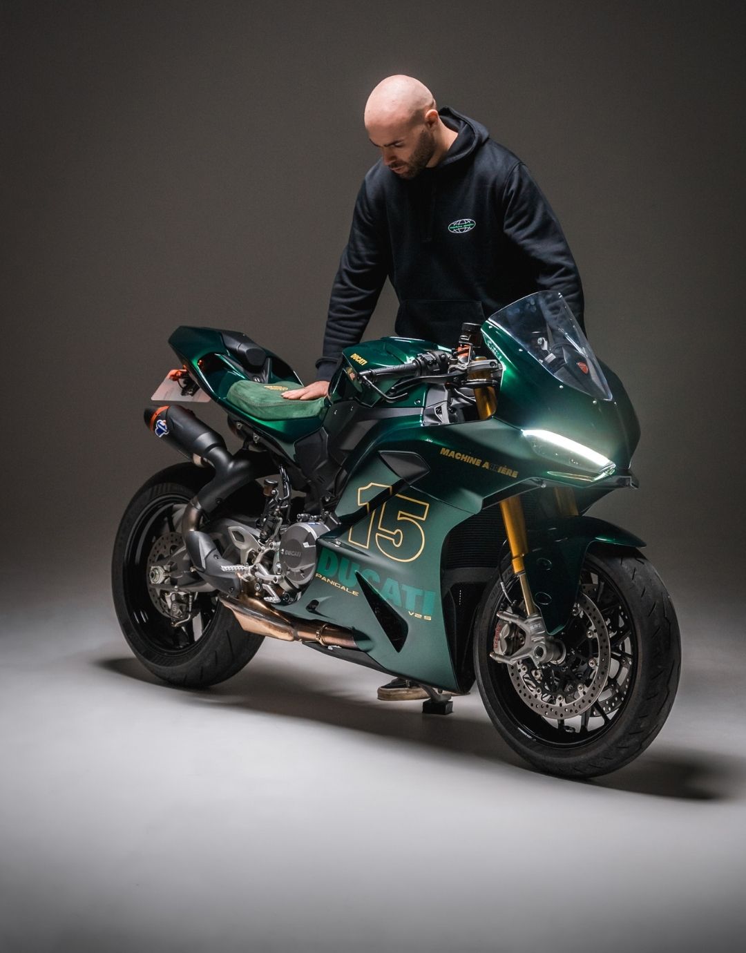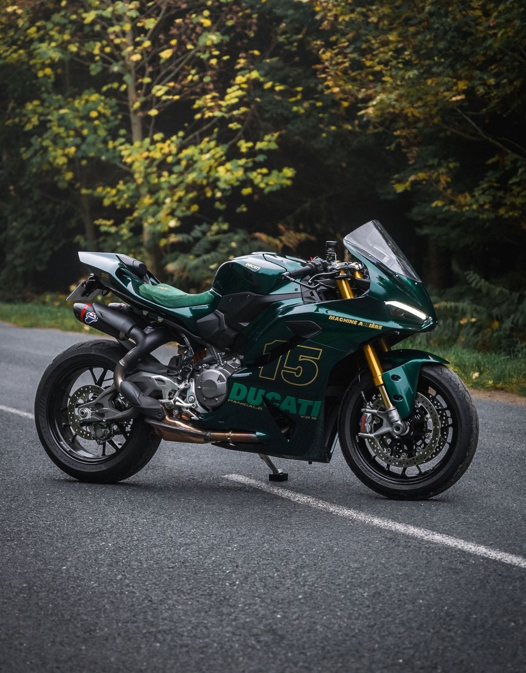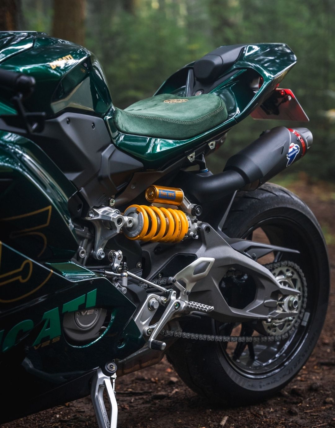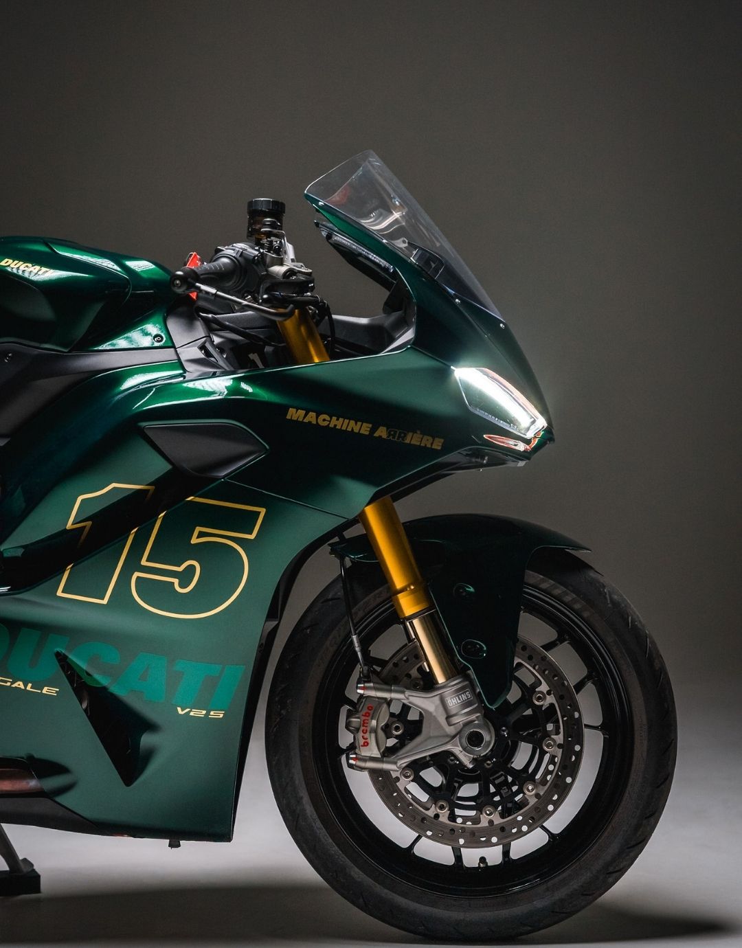 Son bicylindre Superquadro de 890 cm³ délivre une poussée explosive, tandis que son châssis affûté et ses suspensions Öhlins offrent un contrôle chirurgical.